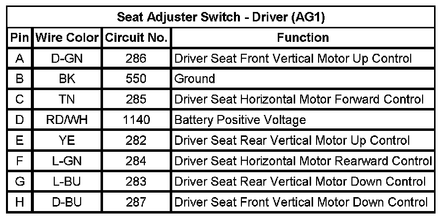 Seat Adjuster Switch - Driver (AG1)