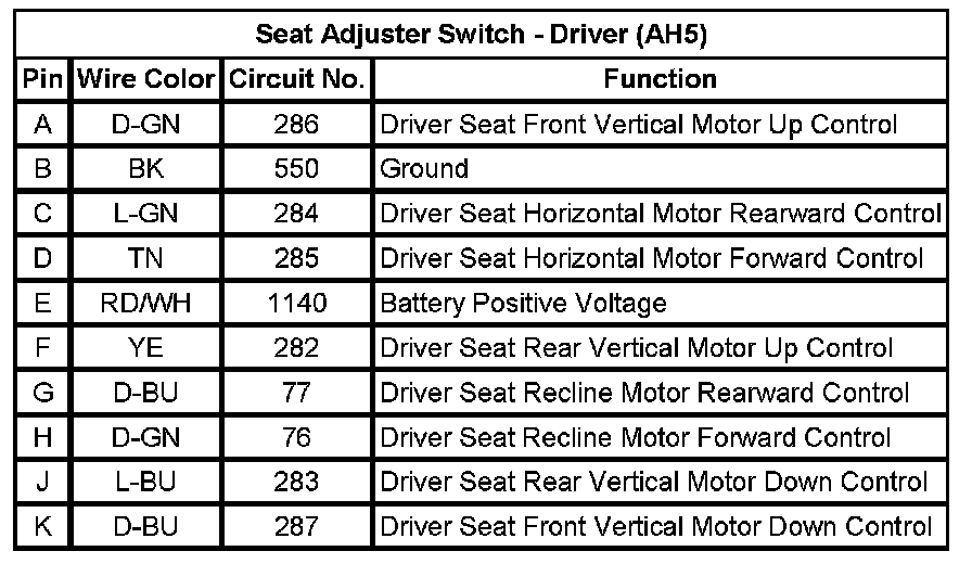 Seat Adjuster Switch - Driver (AH5)