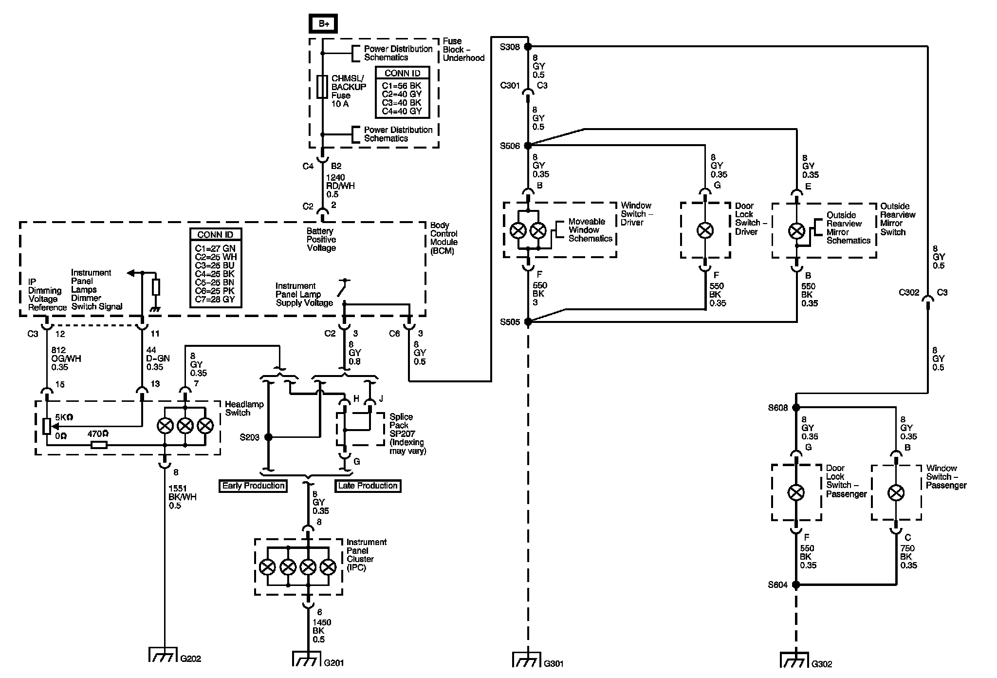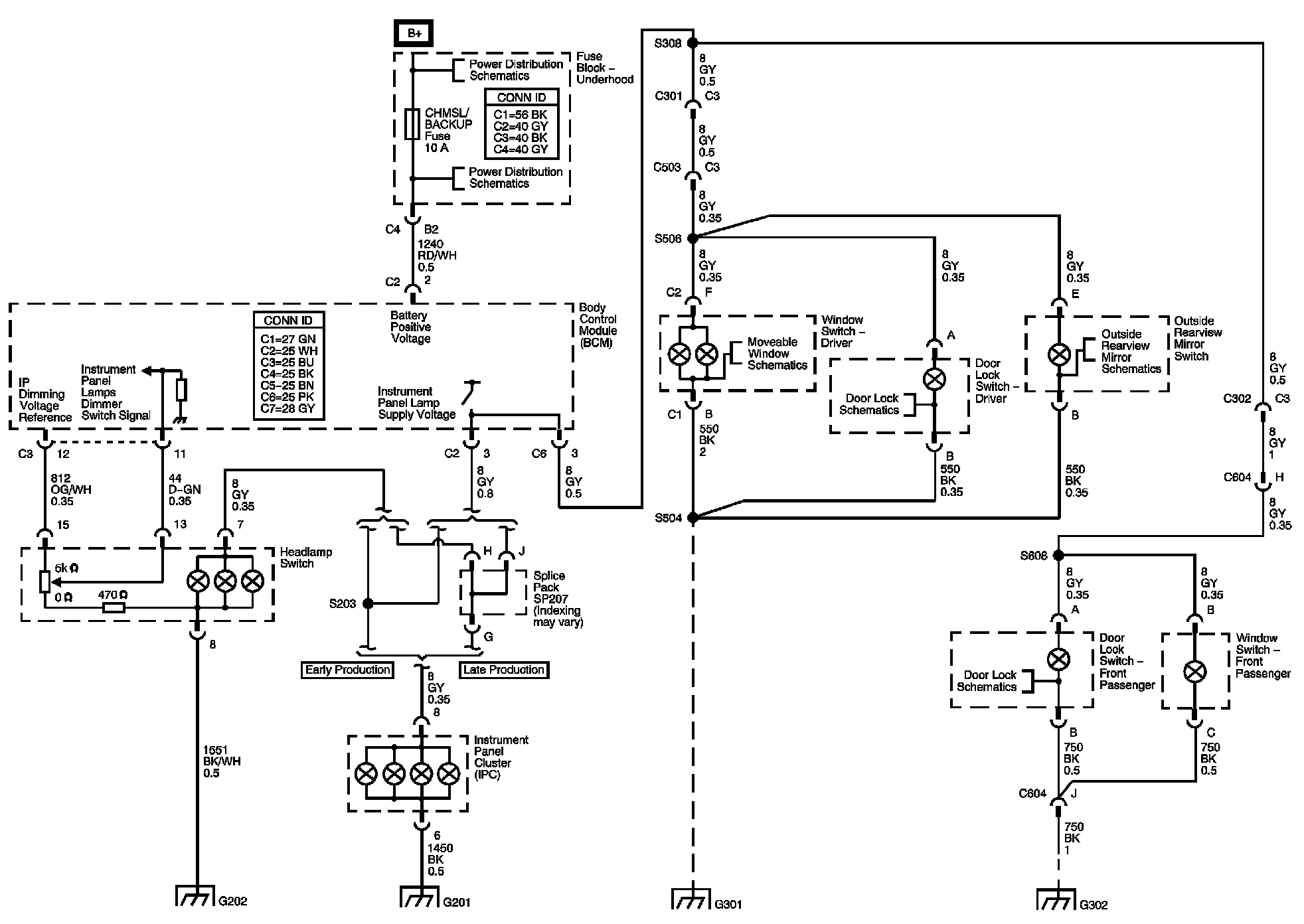 Locations: The locations for the Connectors, Grounds, Splices, and Grommets shown within these diagrams can be found via their numbers at Vehicle Locations. Locations