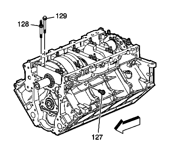 4. Remove the crankshaft bearing cap M10 bolts (129) and studs (128).