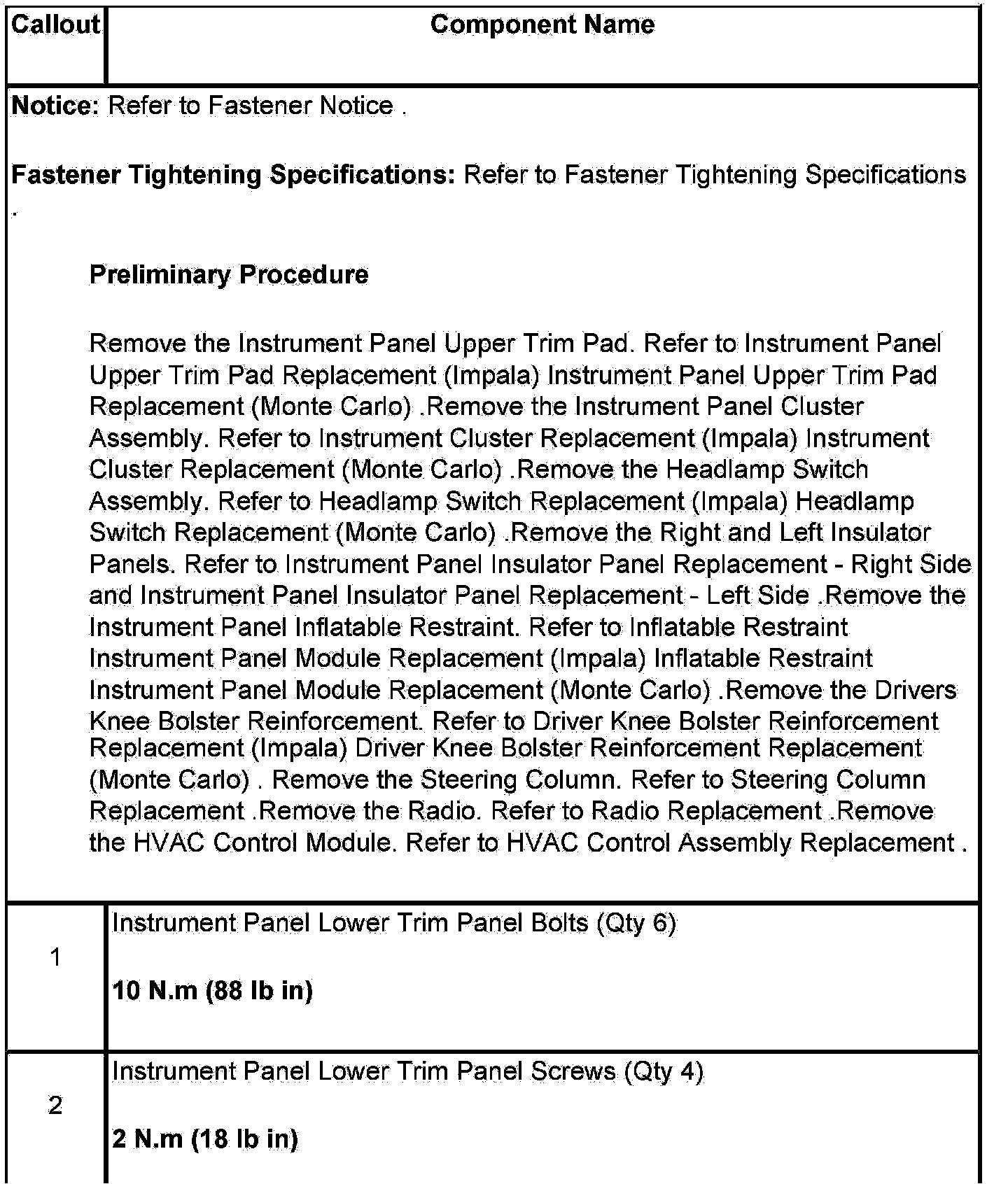 Instrument Panel Lower Trim Panel Replacement (Impala)