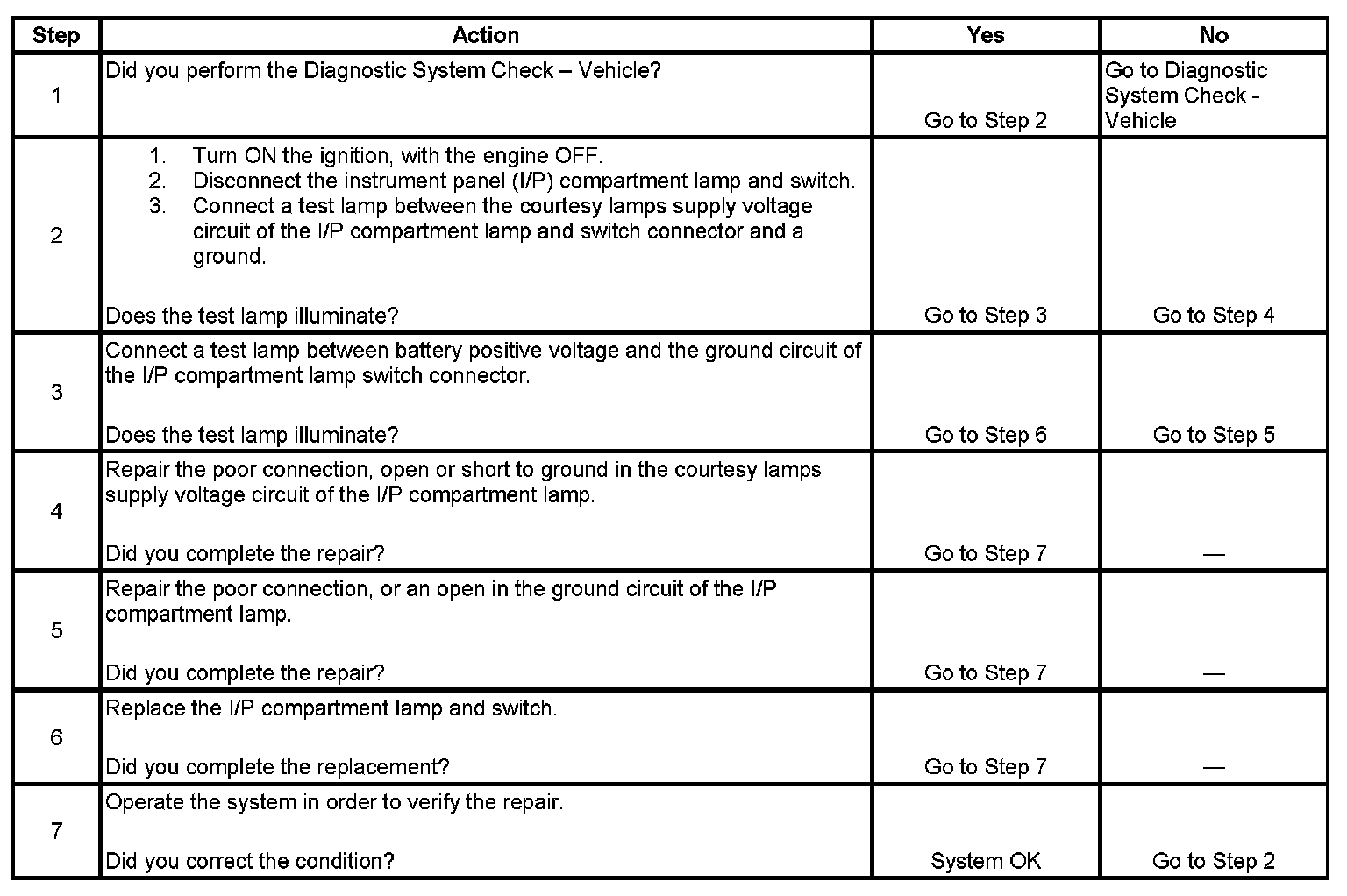 Instrument Panel Compartment Lamp Inoperative
