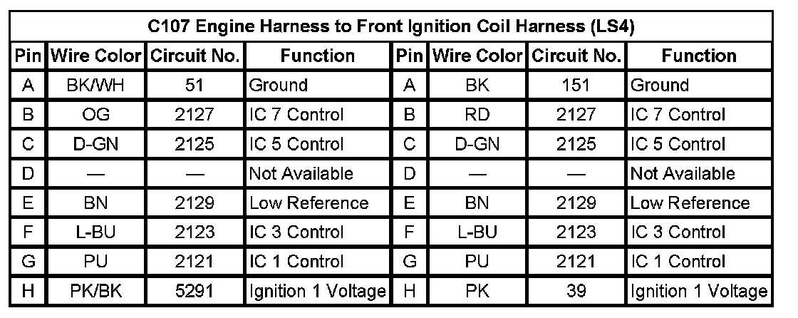 C107 Engine Harness To Front Ignition Coil Harness (LS4) (Pin A To H):