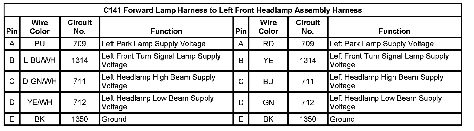 C141 Forward Lamp Harness To Left Front Headlamp Assembly Harness (Pin A To E):
