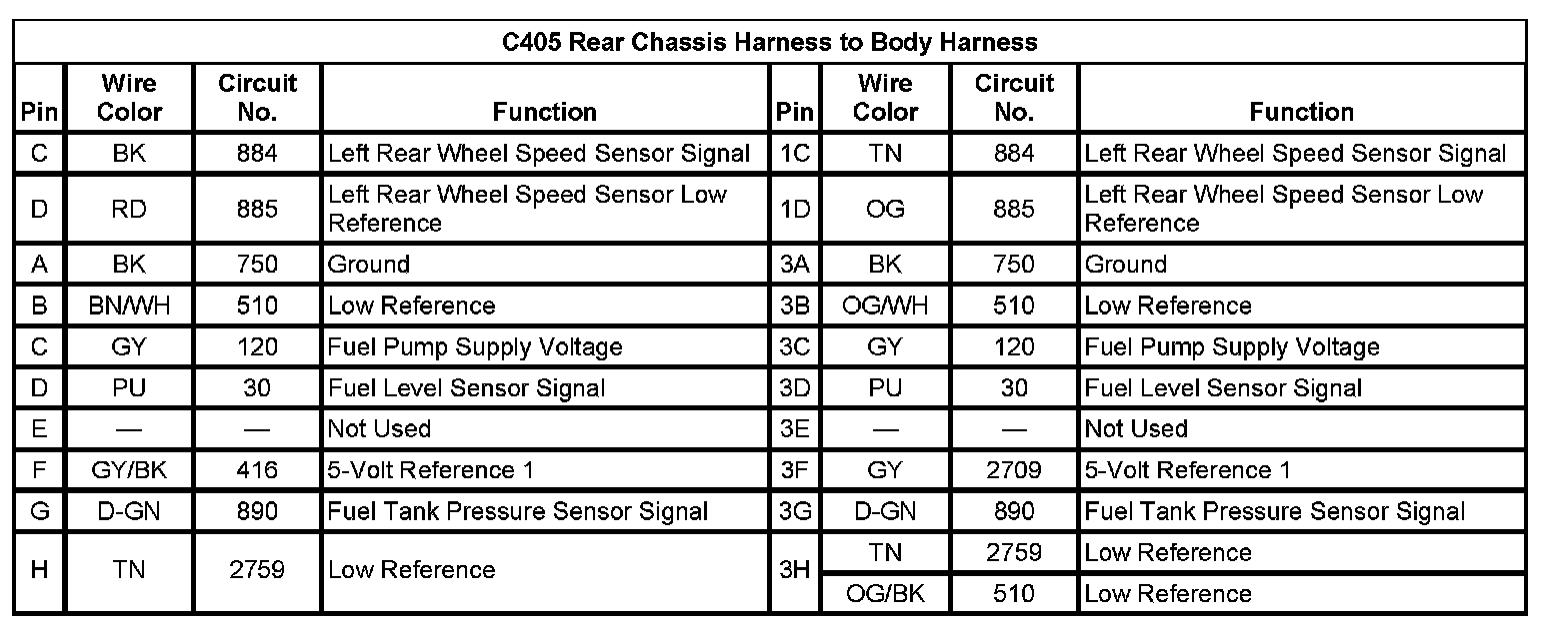 C405 Rear Chassis Harness To Body Harness (Pin C To H):