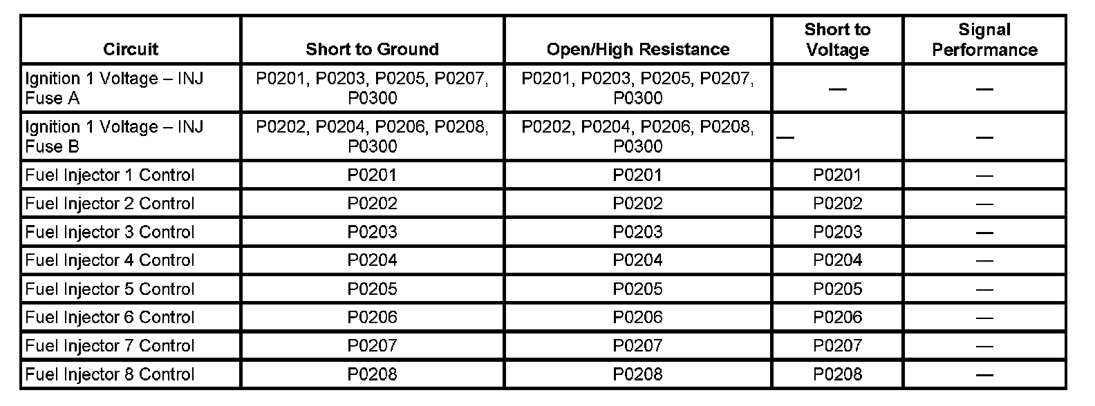 * DTC P0201-P0208 runs continuously when the above conditions are met.