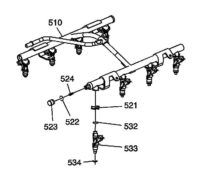 4. Remove and discard the fuel injector O-ring seals (532, 534), as required.