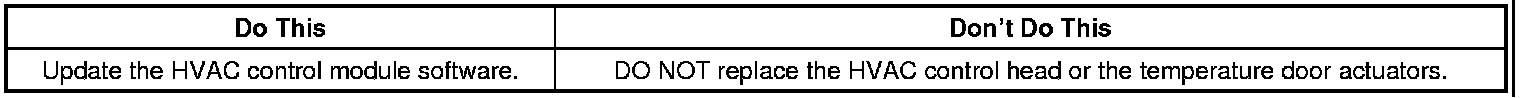 A new calibration has been released that periodically relearns the temperature door positions and prevents the doors from becoming lost. Technicians are to reprogram the HVAC control module with the updated software calibration using SPS. This new service calibration is available on TIS2WEB.
