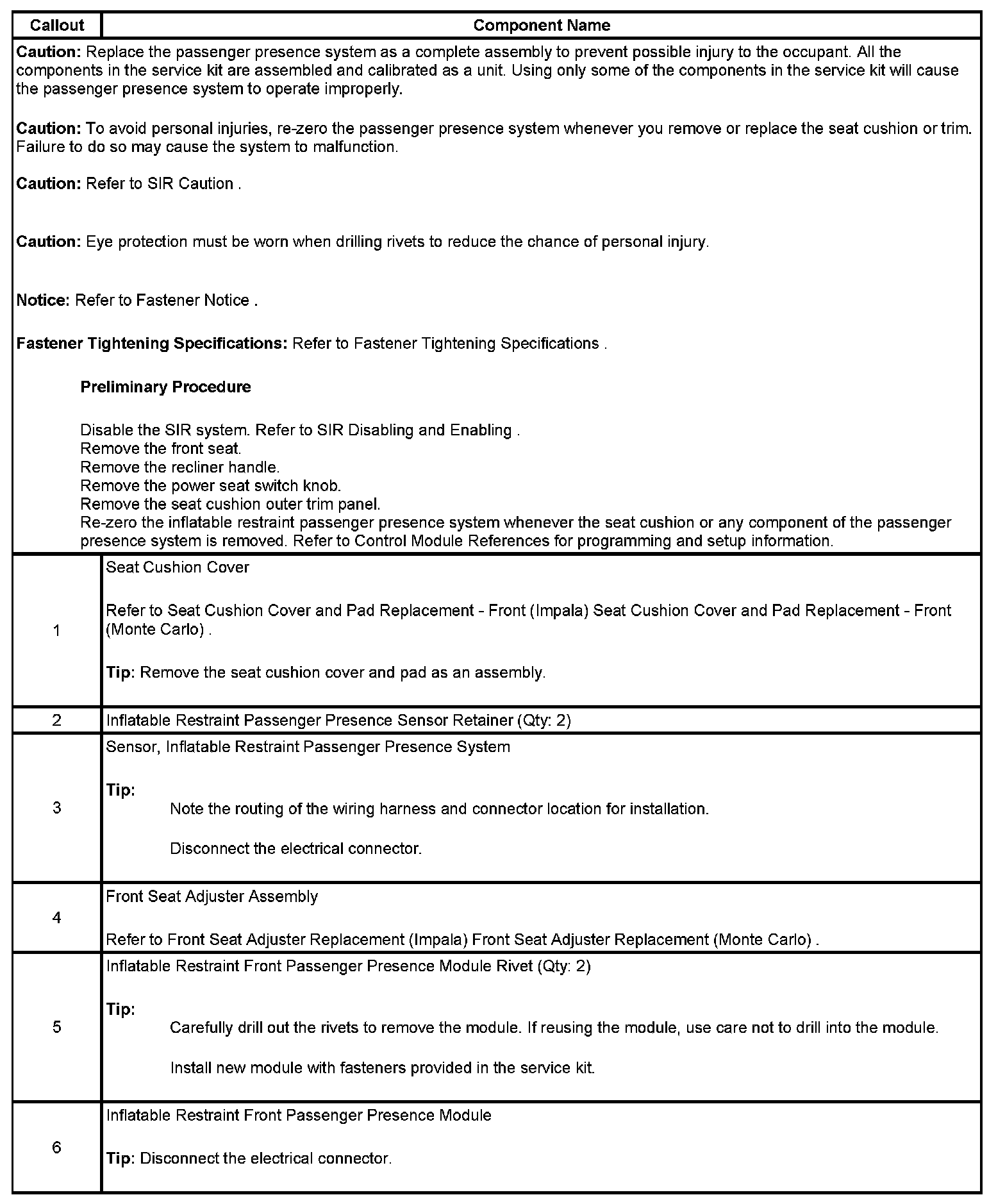 Inflatable Restraint Passenger Presence System Replacement - Front (Impala)