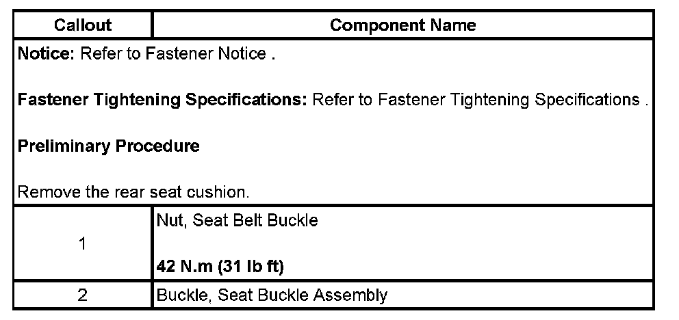 Rear Seat Belt Buckle Replacement (Impala without AM9)