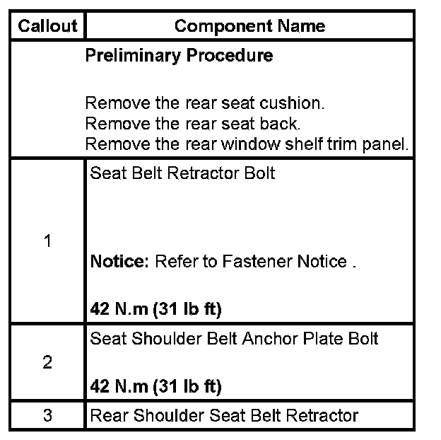 Seat Belt Retractor Replacement - Center Rear (Impala without AM9)