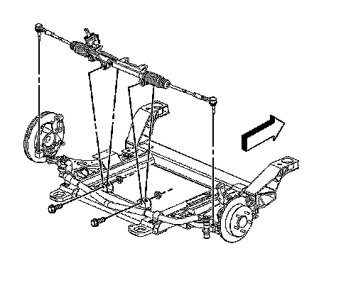 14. Remove the power steering gear through the left wheel opening.