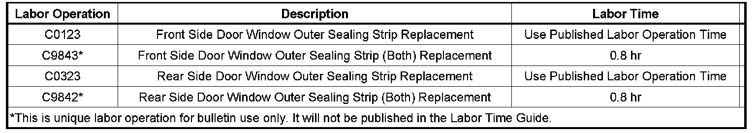 Some customers may comment on a rubbing, squealing or grinding noise when opening or closing the left or right front or rear door glass. They may also comment of scratches in the door glass.