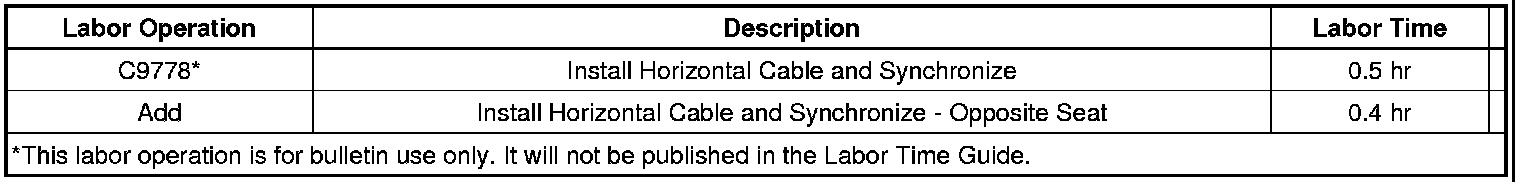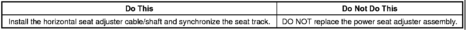 The horizontal seat adjuster cable may become dislodged from the adjuster. This may cause the seat track assembly to become out of synchronization or inoperative.