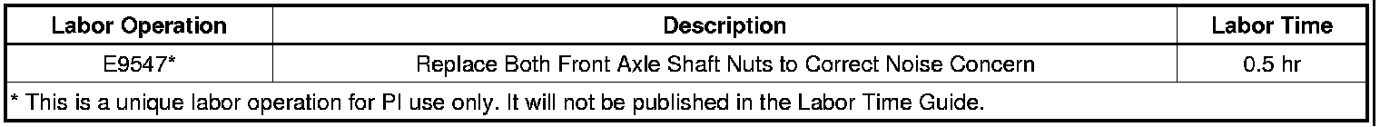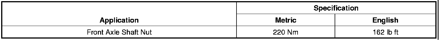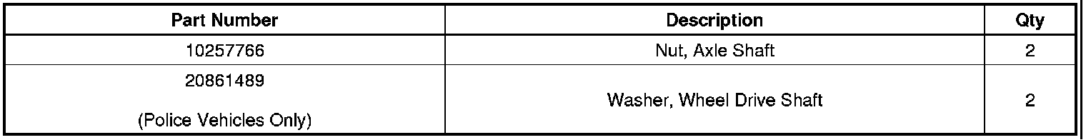 To diagnose the noise, retorque the existing front axle shaft nut to 220 Nm (162 lb ft) and test drive the vehicle. If the noise is eliminated, replace both front axle shaft nuts with GM P/N 10257766 and tighten to the specification indicated below. On vehicles equipped with the police package (RPOs 9C1 or 9C3), add an additional Nord-Lock washer, GM P/N 20861489 between the hub and nut as shown in the illustration below.
