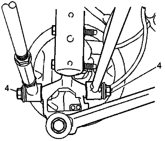 5. Remove the rear wheel spindle rod bolts (4) and nuts from the knuckles (both sides).