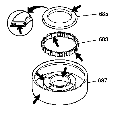 3. Install the thrust bearing (685) onto the 1-2 support drum (687). Press down with hand pressure only.