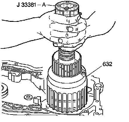 17. Install J 33381-A into the input clutch housing (632).