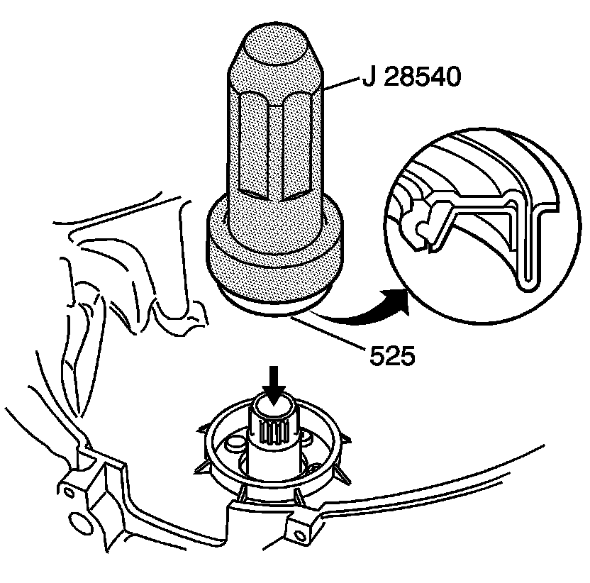 Use J 28540-A and a mallet in order to install the torque converter oil seal (525).