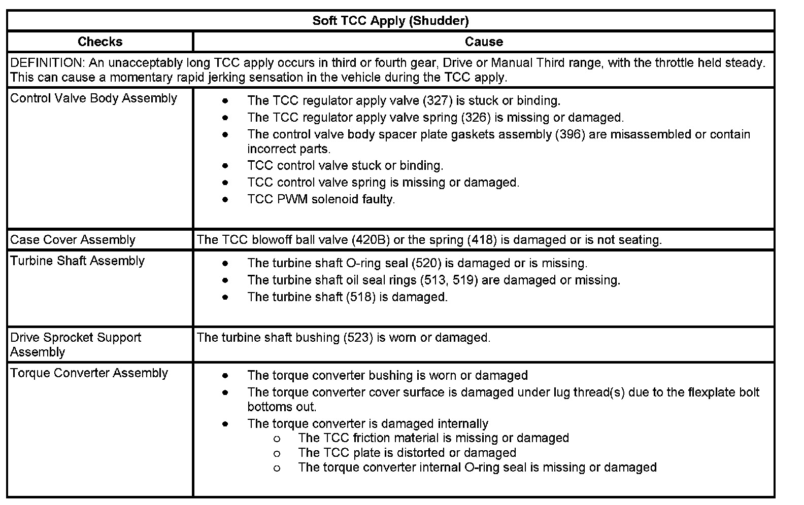 Converter Clutch Apply Rough, Slips, or Shudders: