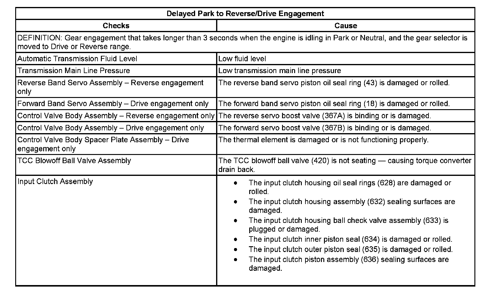 Delayed Park to Reverse/Drive Engagement: