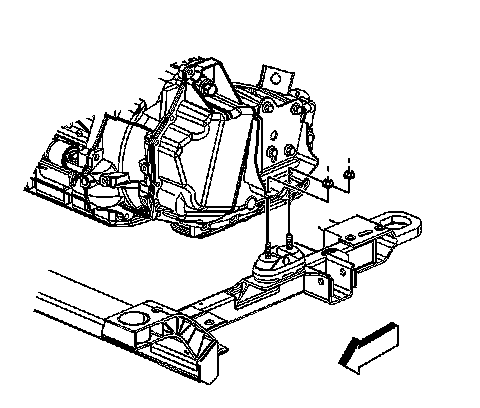 4. If there is movement between the metal plate of the transmission/transaxle mount and its attaching points, lower the transmission/transaxle on the transmission/transaxle mount. Tighten the bolts or nuts attaching the transmission/transaxle mount to the frame or transmission/transaxle mount bracket. Refer to Transmission Mount Replacement - Left Side.