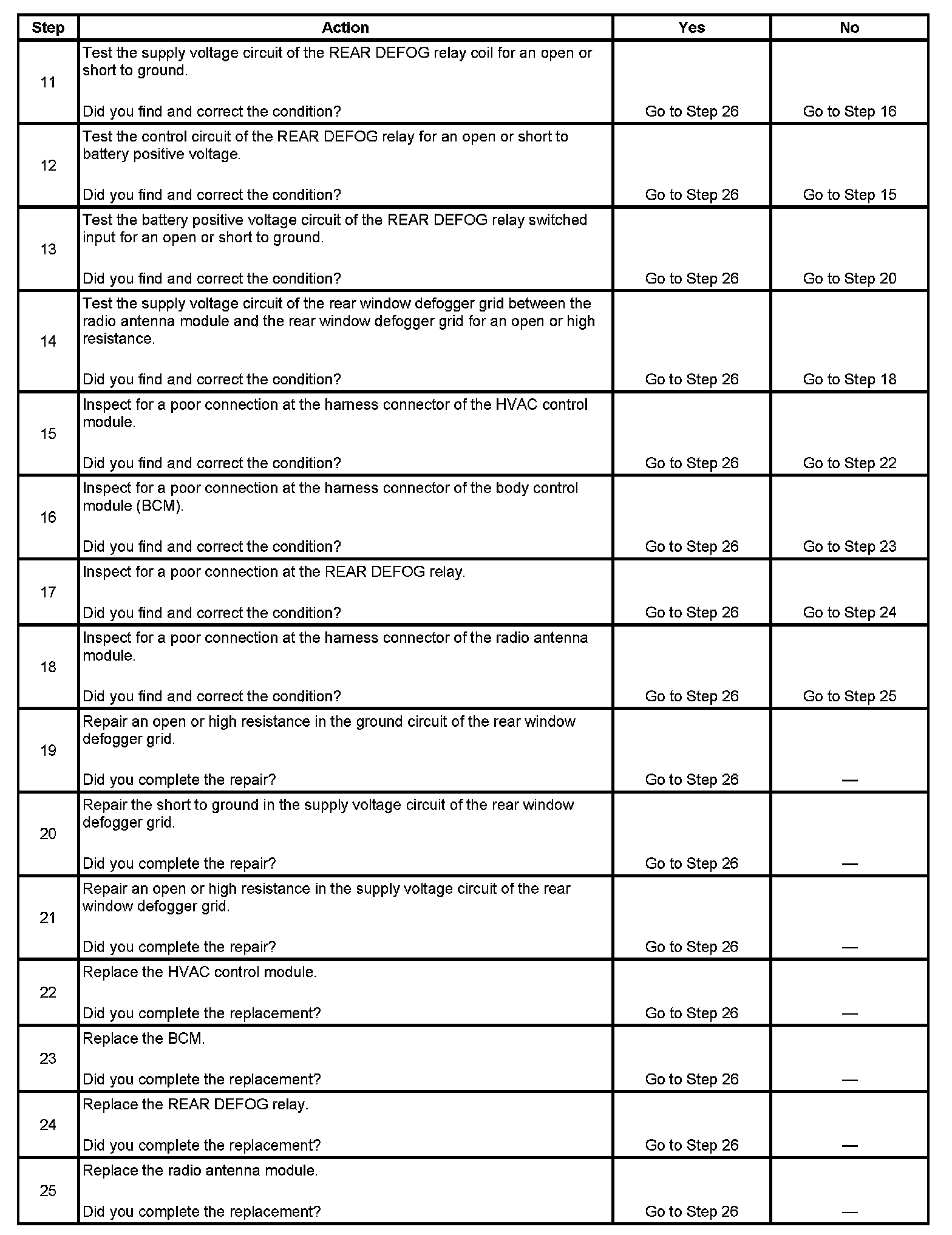 5. Listen for an audible click when the REAR DEFOG relay operates. Command both the ON and OFF states of the REAR DEFOG relay. Repeat the commands as necessary.