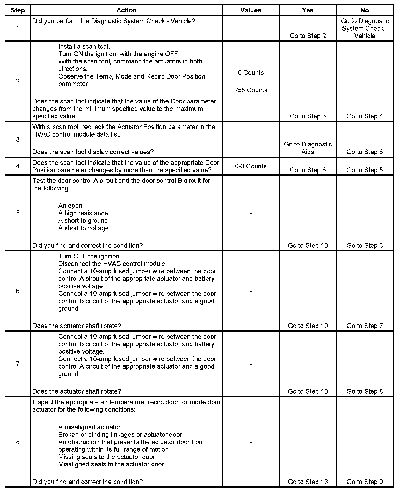 2. This step verifies that the HVAC control module is able to command the appropriate actuator through its full range of motion.