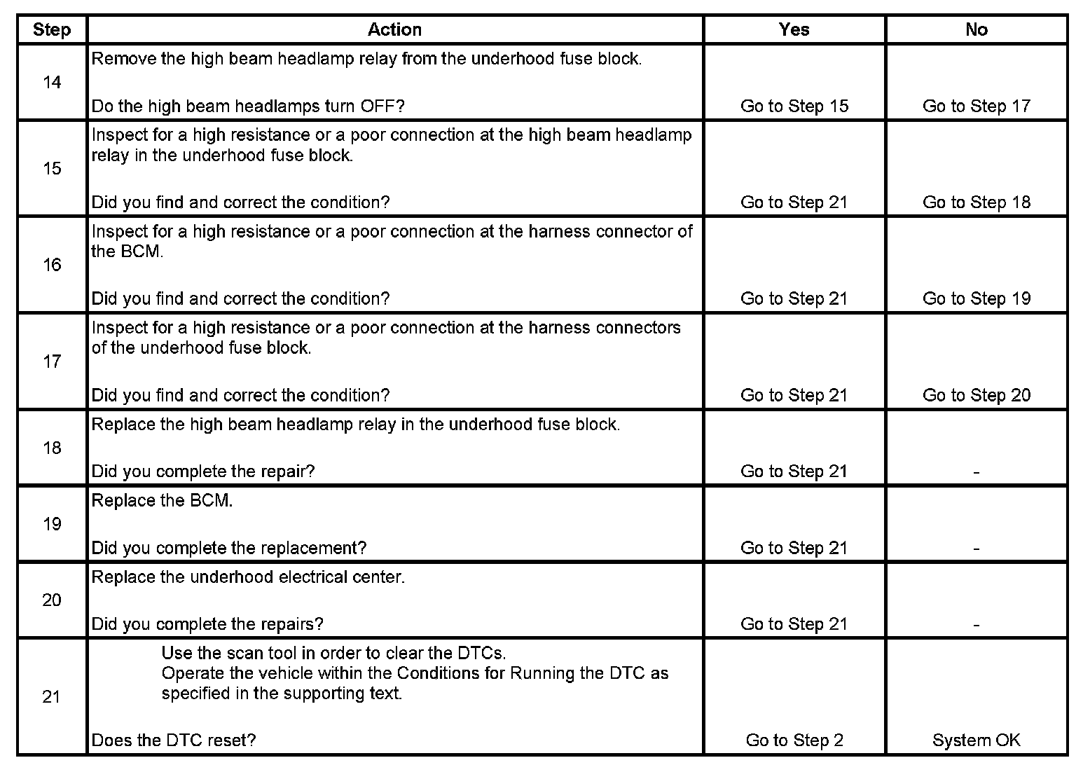This DTC will set if there is a short to voltage in the high beam relay control circuit.