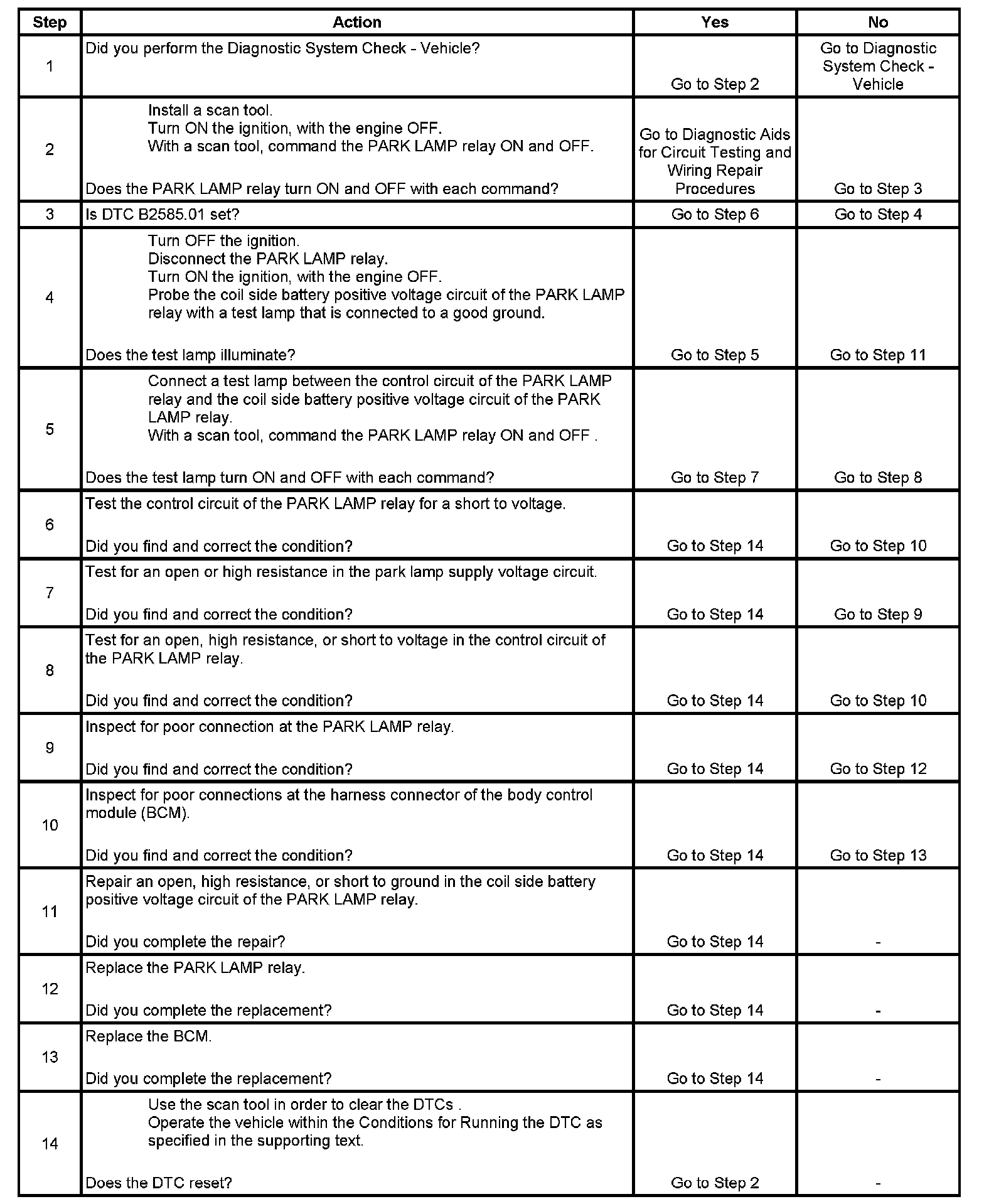 * B2585.01 will set if there is a short to voltage in the park lamp relay control circuit.