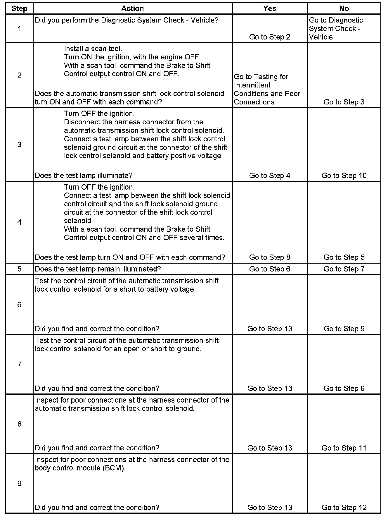4. This step verifies that the BCM is providing battery voltage to the automatic transmission shift lock control solenoid.