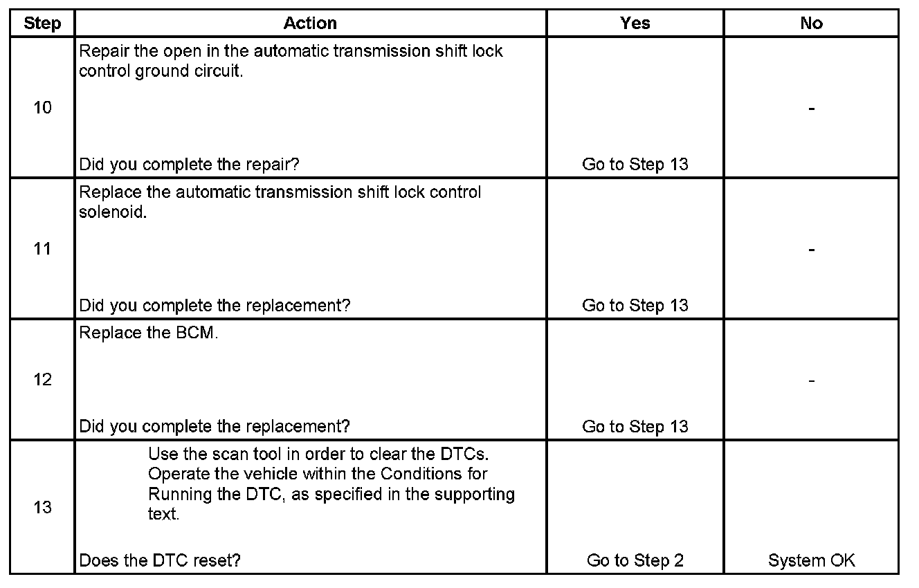 The BCM will not attempt to enable the voltage supply circuit of the automatic transmission shift lock control solenoid until the next key cycle.