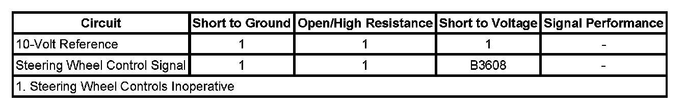 - Steering Wheel Control Entertainment Output Signal Circuit Short to Battery