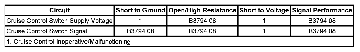 - Cruise Control Function Request Circuit Signal Invalid