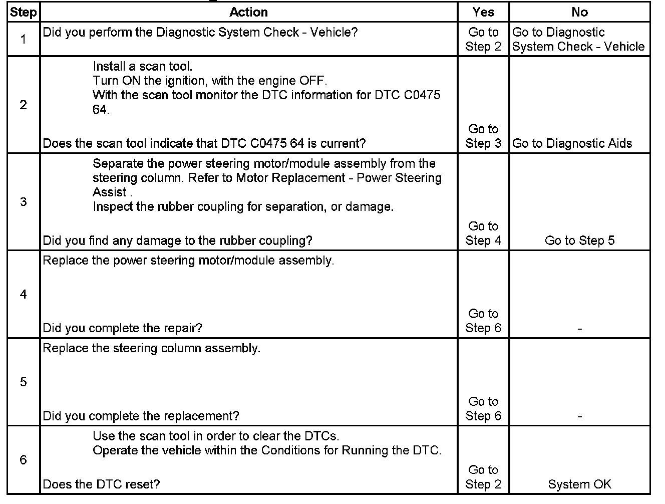 DTC C0475 Electric Steering Motor