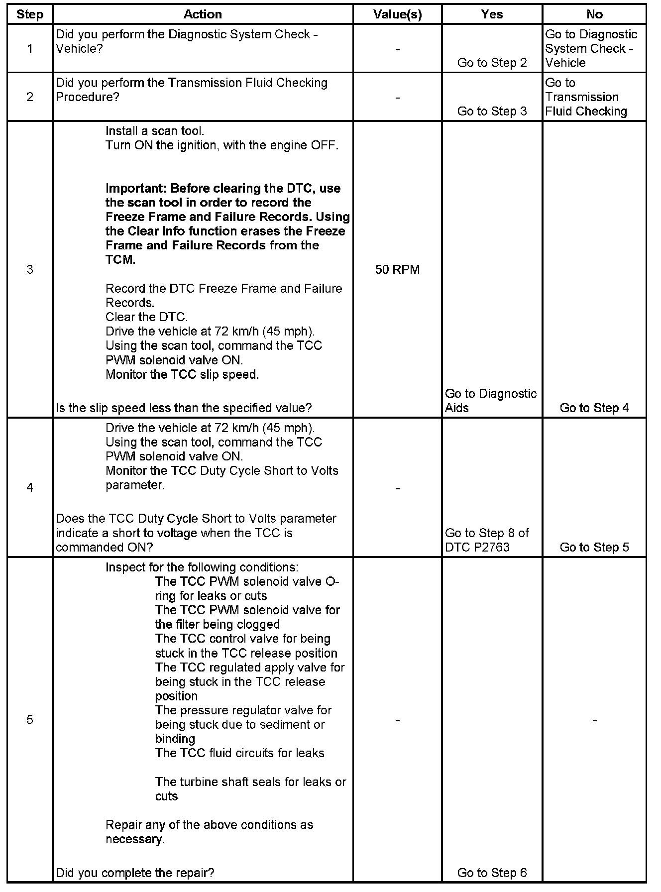 When the TCM detects a high TCC slip speed when the TCC is commanded ON, then DTC P0741 sets. DTC P0741 is a type B DTC.