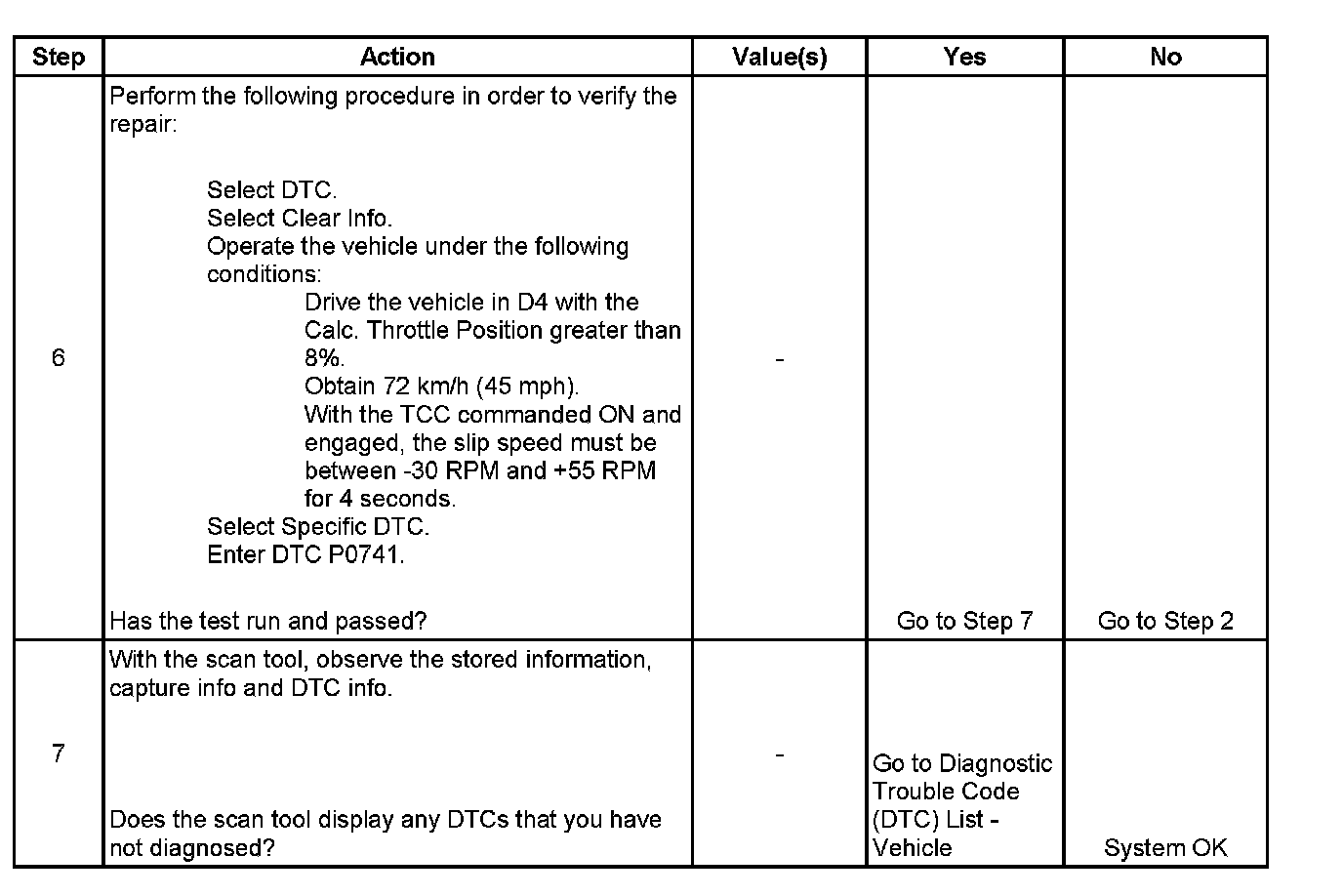3. This step verifies that the TCC engages when commanded ON by the scan tool.