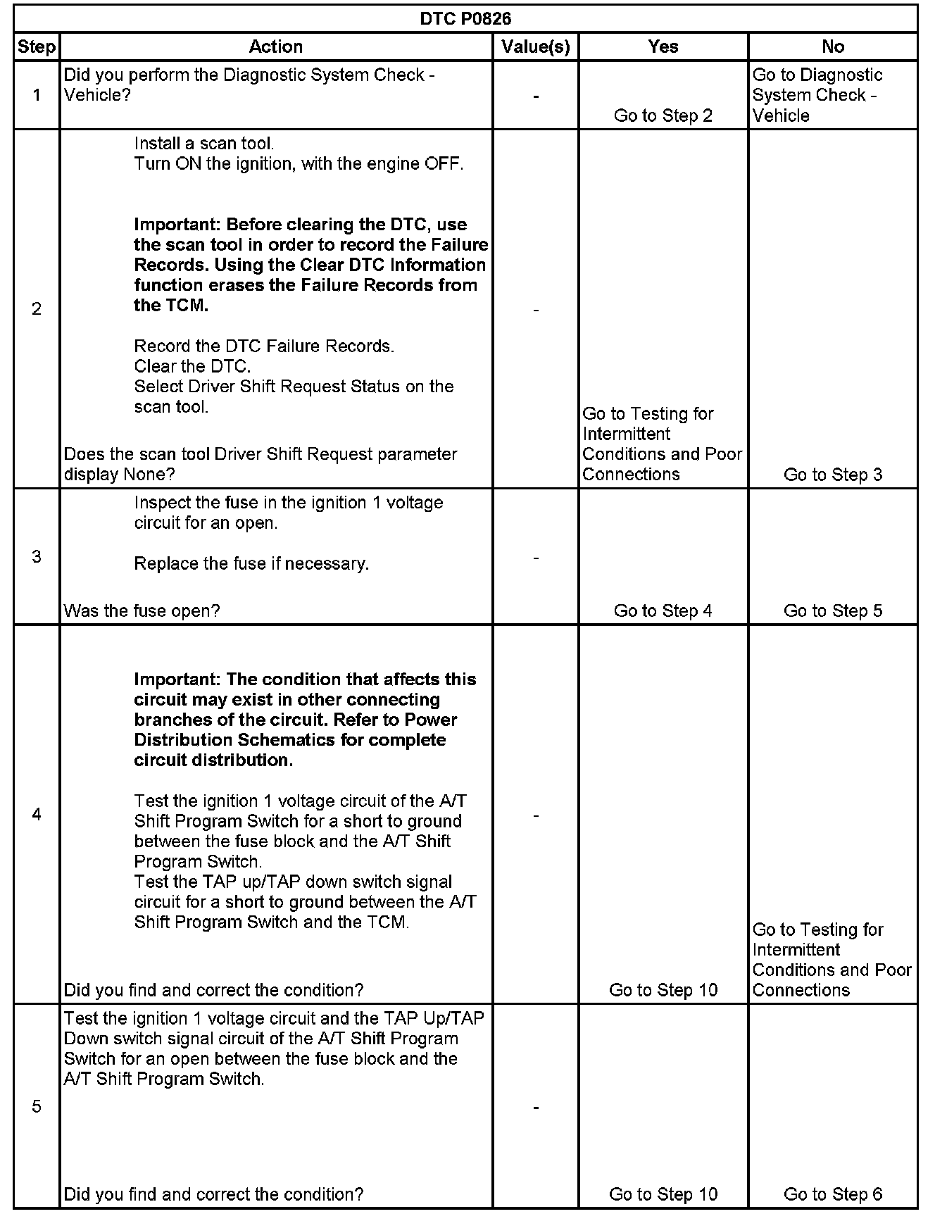 * The TCM stores DTC P0826 in TCM history.