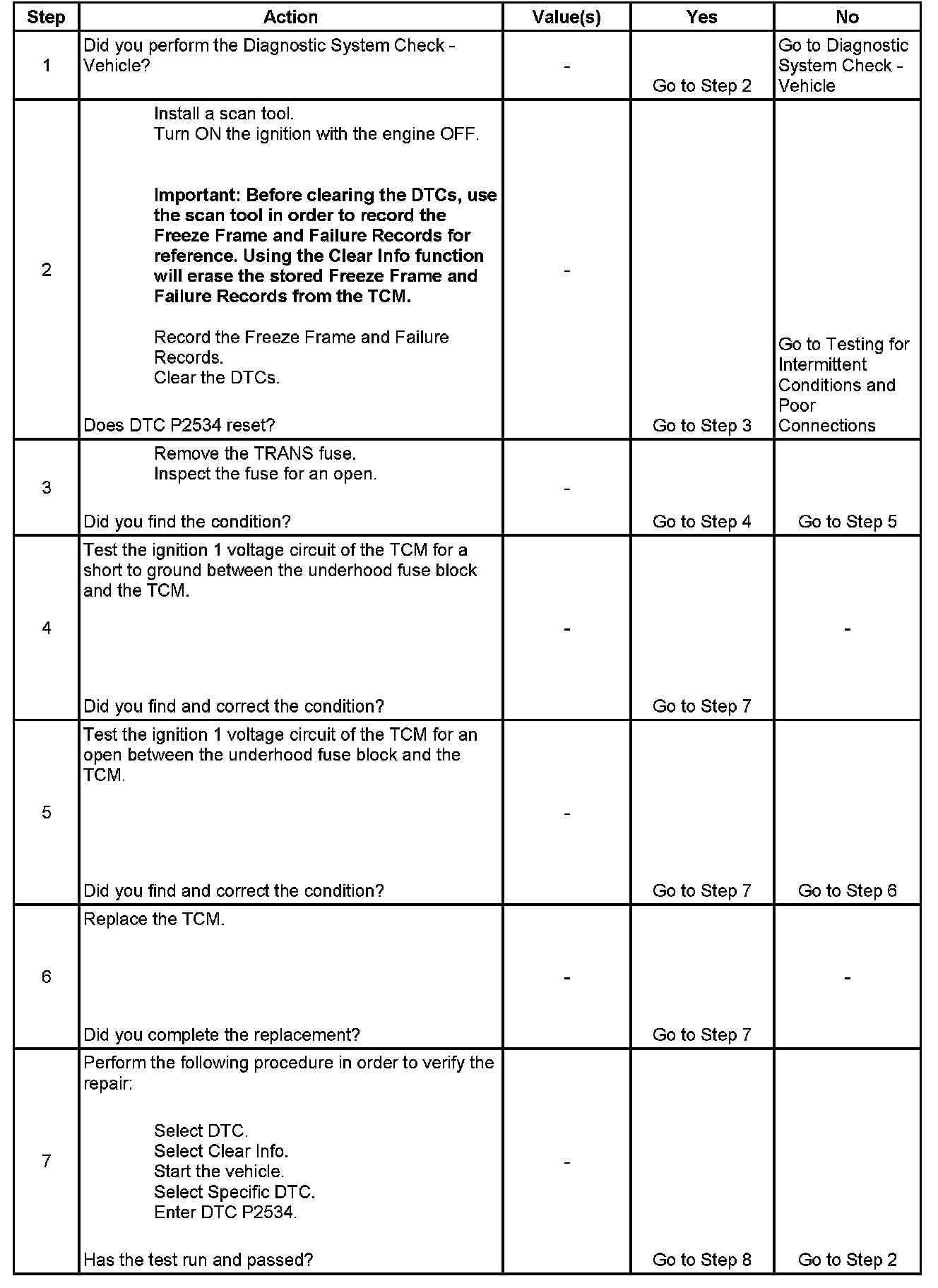 If the TCM detects low voltage on the Ignition 1 voltage circuit, DTC P2534 sets. DTC P2534 is a type A DTC.