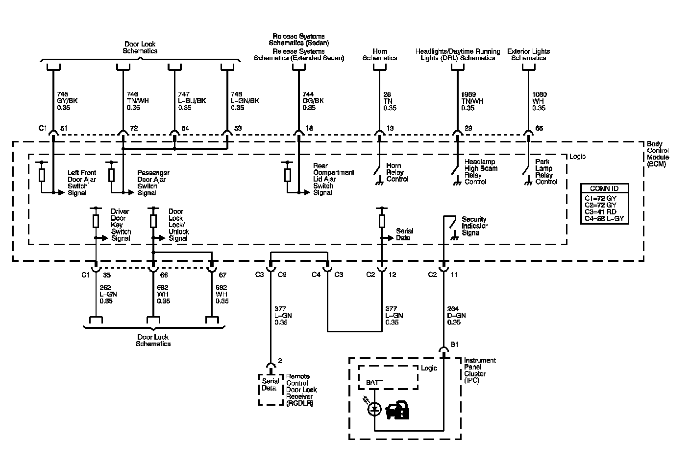 The locations for the Connectors, Grounds, Splices, and Grommets shown within these diagrams can be found via their numbers at Vehicle Locations.