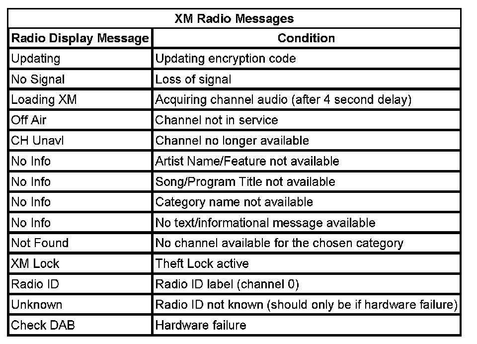When the INFO icon appears in the radio display, a new text message is available for viewing. These text messages are from the RDS broadcaster to the listening public and may be general information such as artist and song title, call in phone numbers, etc.