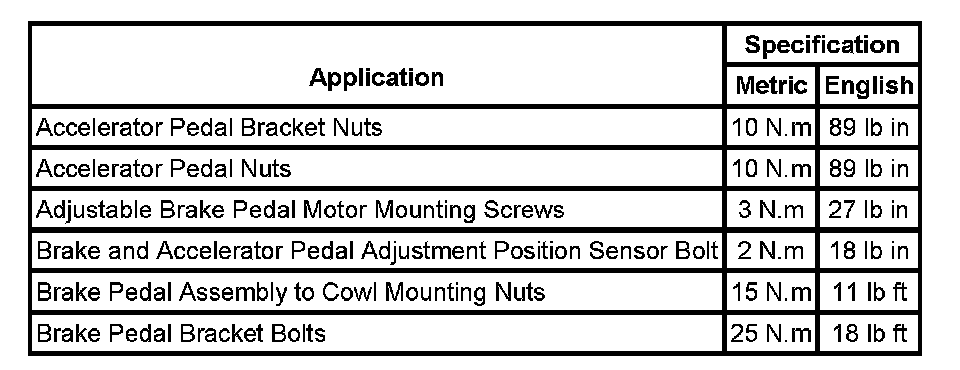 Pedal Positioning System: Specifications