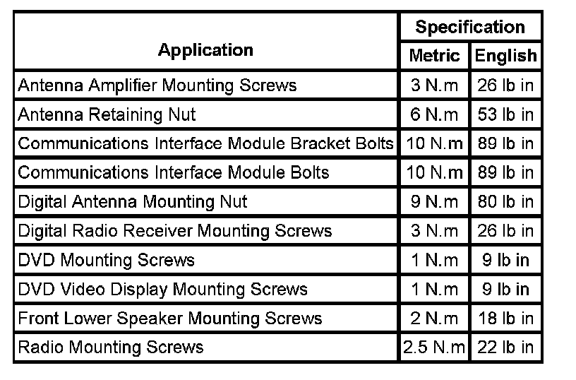 Fastener Tightening Specifications
