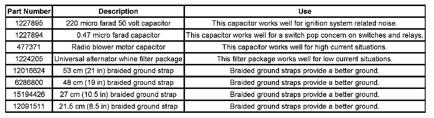 7. If the installation of this filter causes a delay when turning the radio ON or OFF, or other noticeable performance problems, remove the filter and install a 0.47 micro farad capacitor (P/N 1227894) to chassis ground.