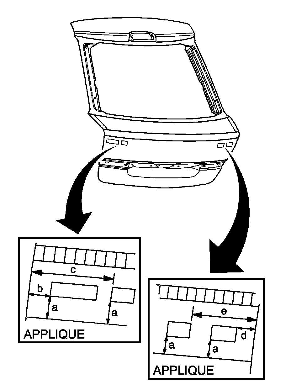 3. If the location of the liftgate emblem/nameplate has not been marked, apply tape and use the following dimensions: