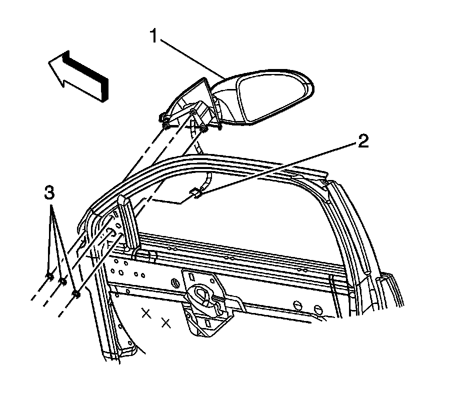 5. Remove the mirror from the front door (3).