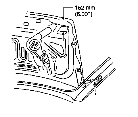 3. Using a heat gun, apply heat in a circular motion to the rear spoiler mounting locations from the inside for about 30 seconds, 152 mm (6 in) from the surface.