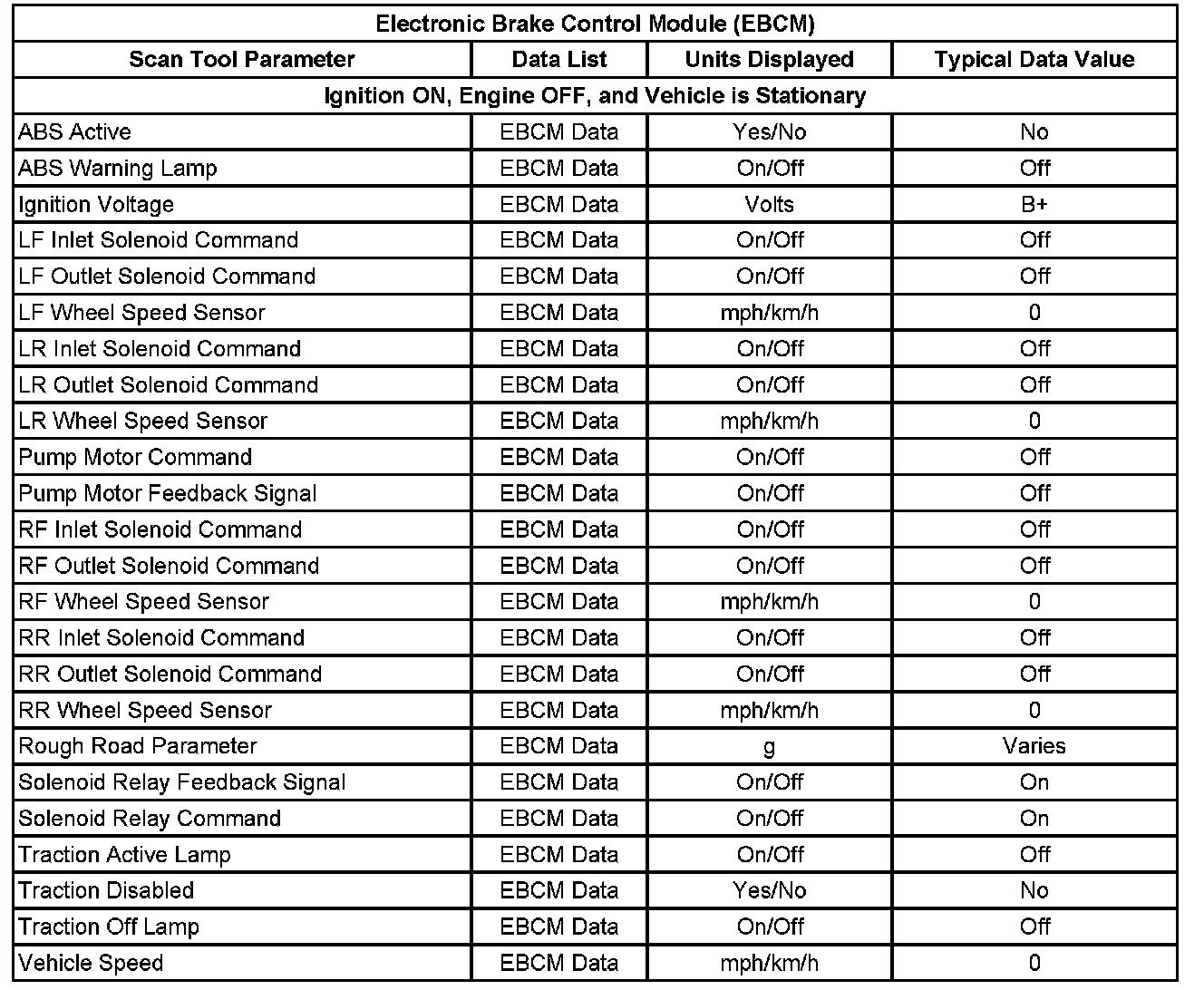 Scan Tool Data List