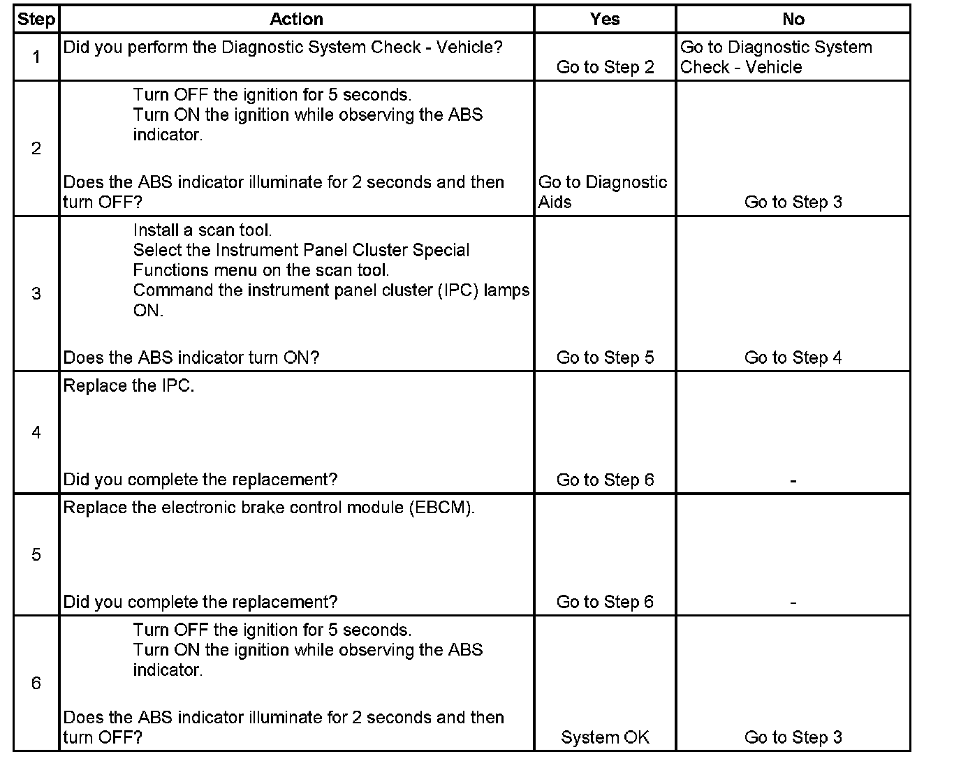 3. This step tests if the instrument panel cluster (IPC) is able to turn OFF the ABS indicator.