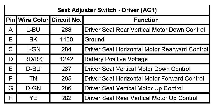 Seat Adjuster Switch - Driver (AG1)